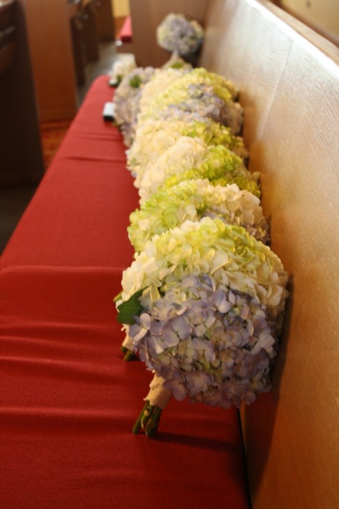 Oh, the hydrangeas lined up along the pew! Each wedding is special in its own way — often in ways known only to family members or close friends; I especially love meaningful touches or traditions, such as the beautiful vows your grandfather wrote and used. BTW, the blessing from the Book of Numbers I say over each of my daughters’ heads at tuck-in every night.