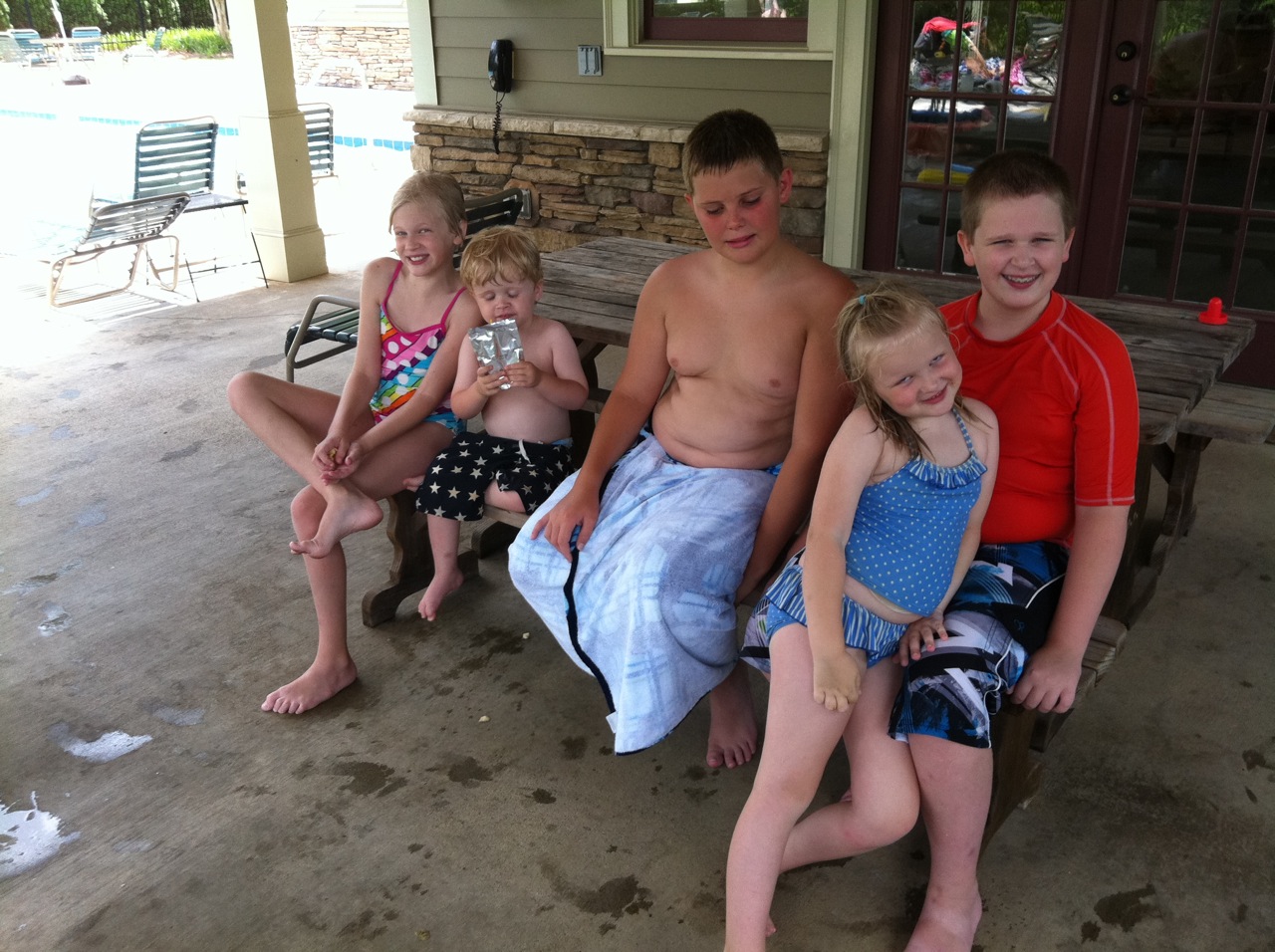 And in words: Captions in no particular order…hydrangeas – girl-picked and arranged…boys playing boy games on the Wii…bug on the garage door…eldest playing with instagram…fun time with friends at the pool…stacks of pancakes for supper…an experiment with wearing homemade curlers to bed (Middle Girl says, “I look like James Madison!”)…Father’s Day – Hodgepodgedad with the Hodgepodge…the ‘burger and fries’ present…a clean house before friends come over for a Tapestry tea!…daylillies blooming daily…dress up fun with friends…naps…snuggles with favorite stuffed animal…First Day of Summer scavenger hunt – favorite, a butterfly…math manipulatives morning…Nana’s sparklers pastel lesson…and a hydrangea pastels lesson to come!