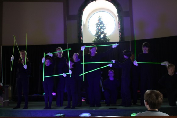 My two drama girls were part of this wonderful dowels variety act with dowels – set to Toby Mac’s The First Noel. They also participated in a choric – taking turns reciting portions of Luke 2.