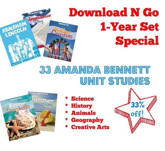 What would you do with an entire year of Download N Go unit studies by Amanda Bennett? A whole year! Oh how exciting would that be? A year of creative learning stretching out before you and your children! Each study will take one to two weeks to complete, so you truly do have a year’s worth of curriculum.