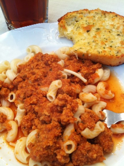 Sometimes the simplest is the best and most filling for Sunday. Like spaghetti! Try some elbow macaroni to dress it up a bit. (This was Nana’s idea one Sunday). Add a side of garlic bread. Maybe a salad. Just boil your noodles up the day before. If you’ve cooked your ground turkey or ground beef in the slow cooker, just pull it out and microwave.