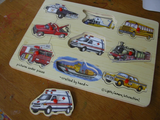 The community helpers puzzle. Its pieces dumped in the floor, again. I find myself frustrated, again.