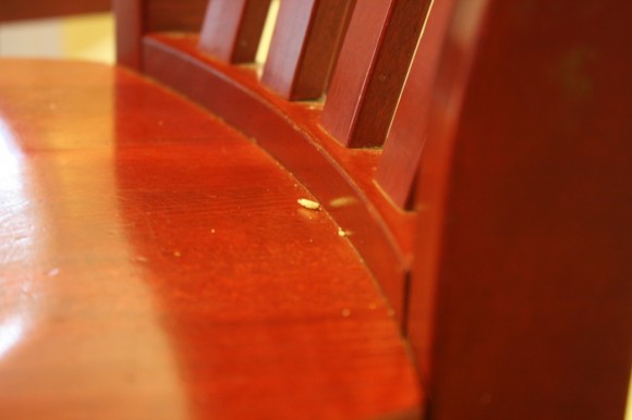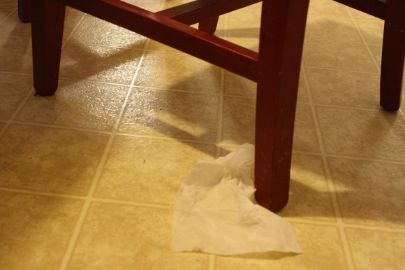 Nana said it. She was across the room, straightening a bookshelf. I sat underneath the kitchen table, amazed and saying out loud that I’d not noticed all those splatters on the chair legs. Asking her how I’d missed it.