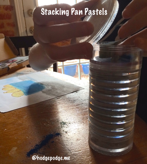 We have since used pan pastels on several occasions, including our lemon chalk art tutorial in January. Our first grader is Nana’s helper in the video.