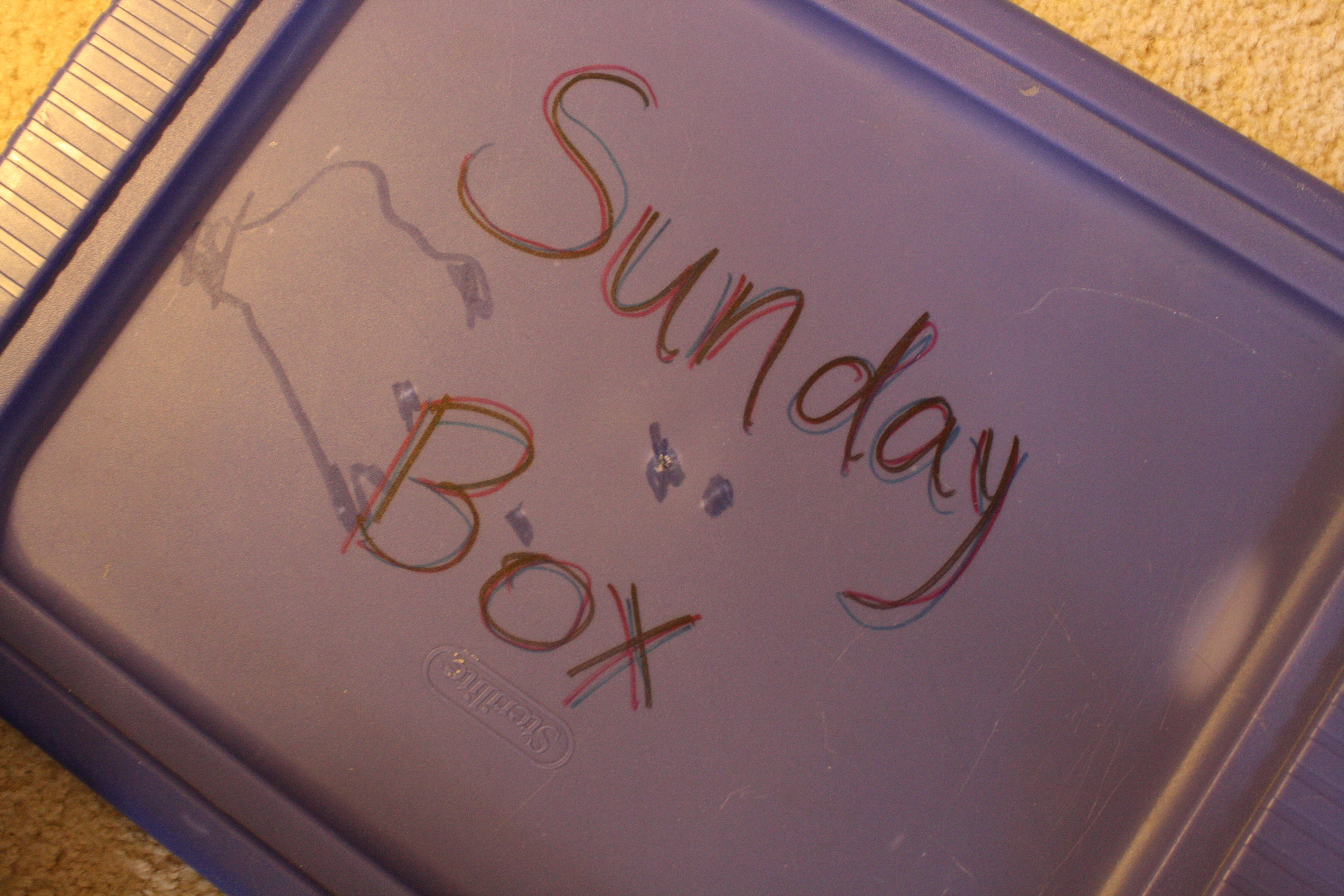 It’s nothing fancy on the outside. A plastic storage tub. Permanent marker on the lid labels it Sunday Box. It’s what’s inside that makes Sunday family time memorable. That, plus only getting to peek inside once a week.